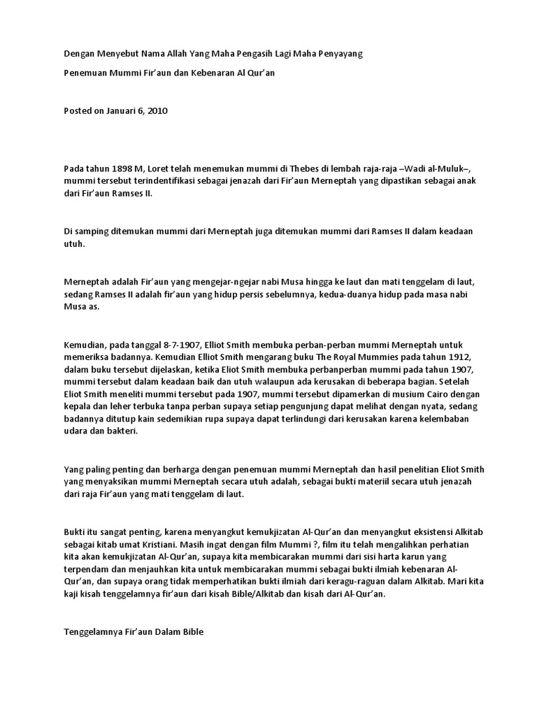 Ramses Ii Dan Nabi Musa - Mayat Firaun