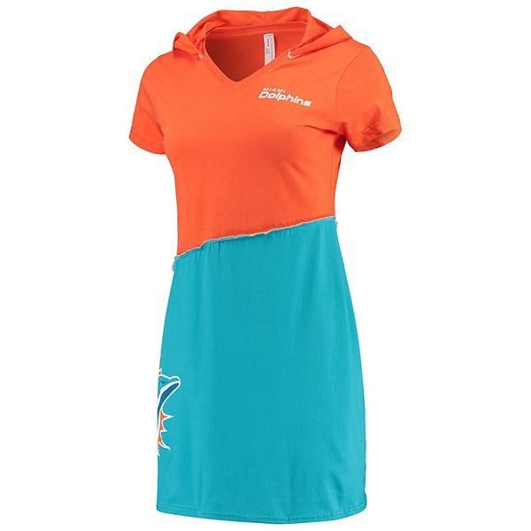 Miami Dolphins Jersey Orange - Women S Refried Tees Orange Aqua Miami Dolphins Hooded V Neck Mini Dress